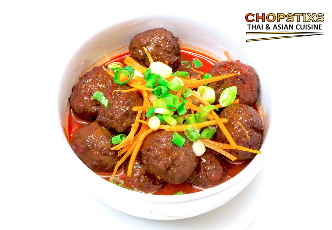 Order online for delivery and takeout: A4.Spicy Meat Balls from Chopstixs Thai & Asian Cuisine. Serving the best Thai & Chinese Food Restaurant,Fort Bragg Delivery in Spring Lake, NC.