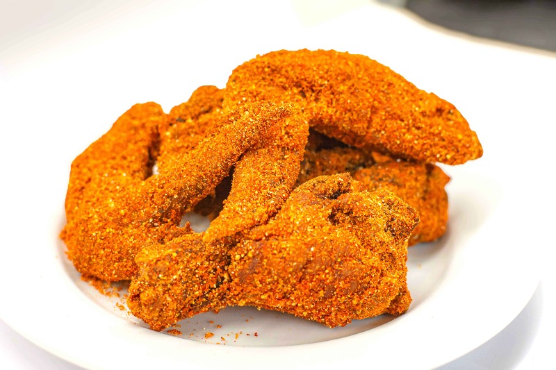 Our special marinated chicken wings are deep-fried until golden and crispy. Then mixed in spice seasoning consisting of chili, paprika, lime, salt, roasted rice powder and sugar.