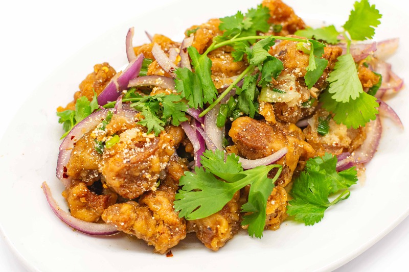 Order online for delivery and takeout: SP4.Yum Gai Zabb (Spicy Fried Chicken Salad) from Chopstixs Thai & Asian Cuisine. Serving the best Thai & Chinese Food Restaurant,Fort Bragg Delivery in Spring Lake, NC.